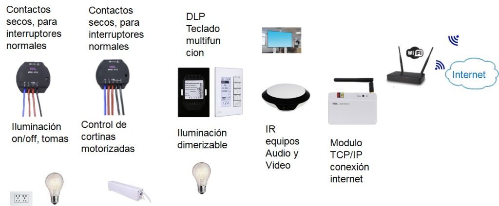 estos equipos se comunican a un Gateway que es el puente para la conexion TCP/IP para el control desde las aplicaciones moviles desde cualquier parte del mundo.